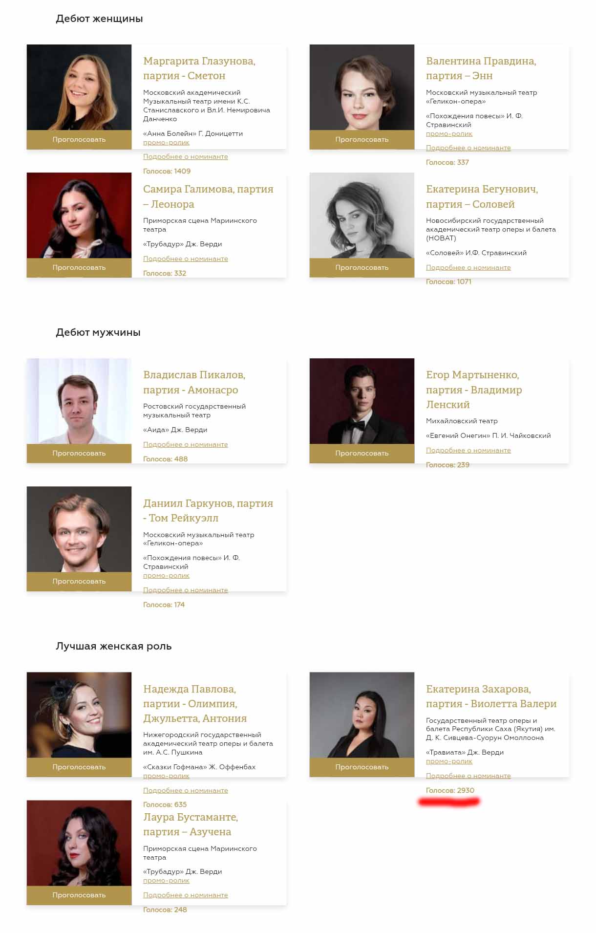 Персона - Екатерина Захарова, партия - Виолетта Валери: 2930 голосов