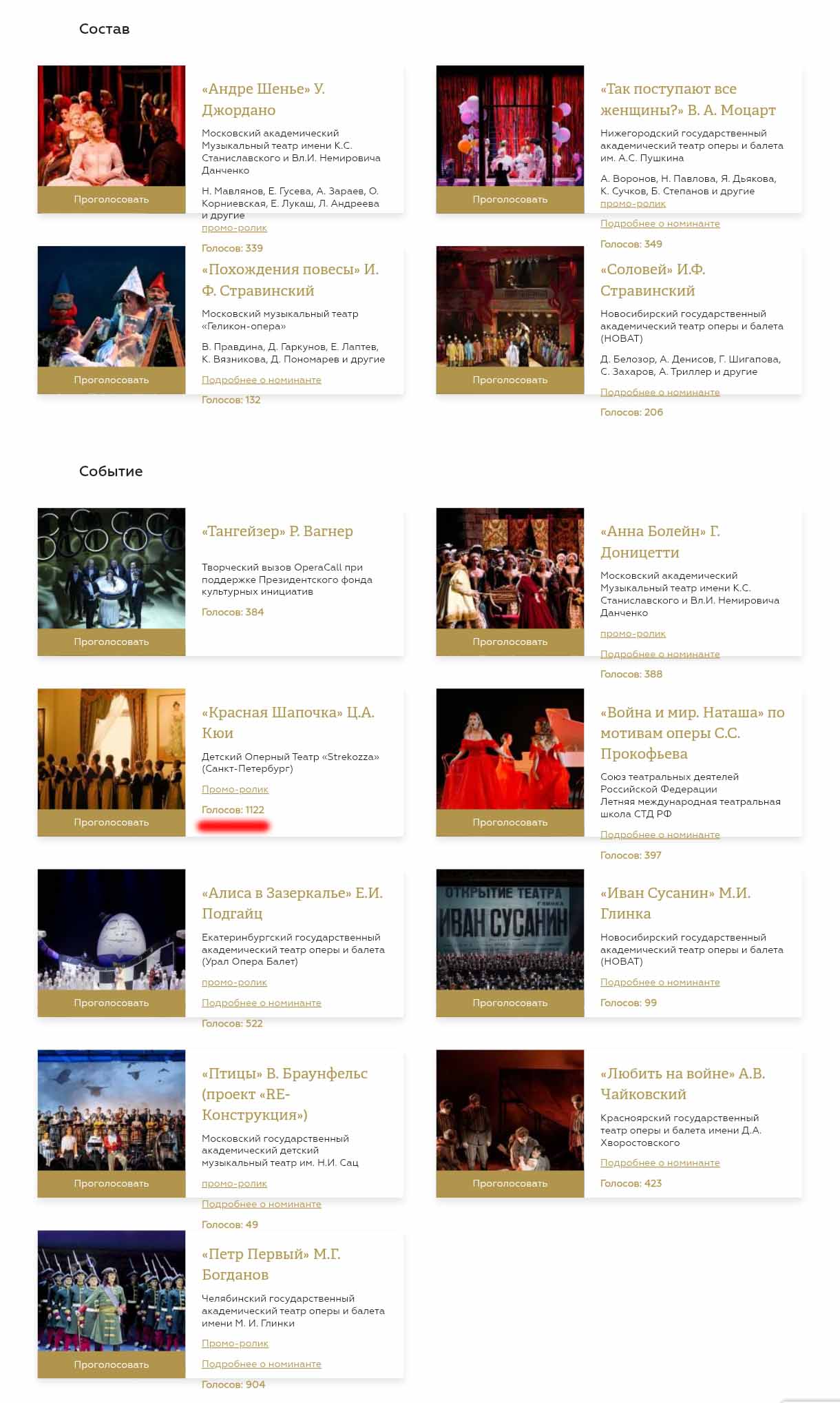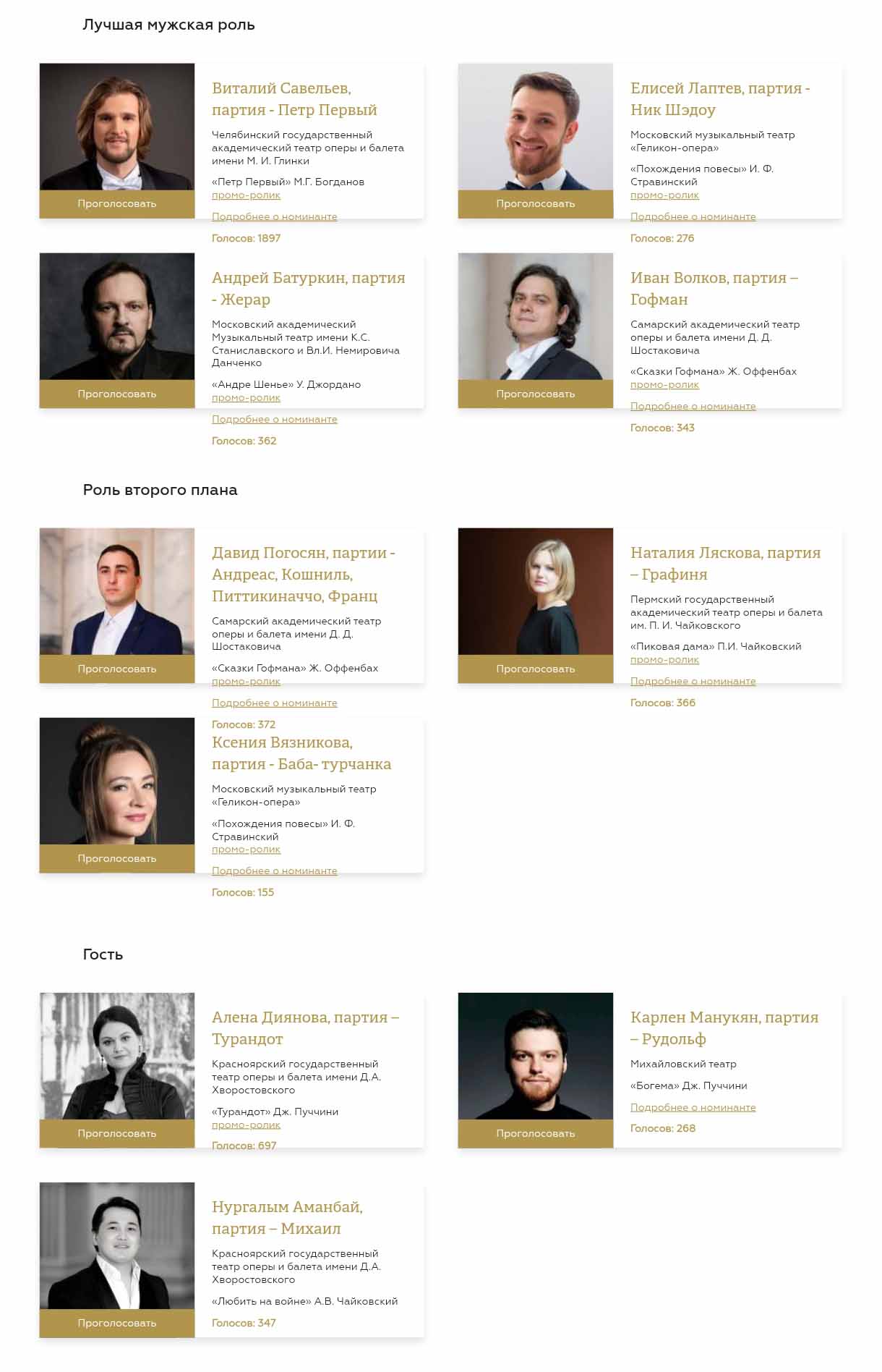 С 1 по 28 ноября на сайте Национальной оперной премии «Онегин» поклонники оперы смогли проголосовать за своих фаворитов и свои любимые спектакли.