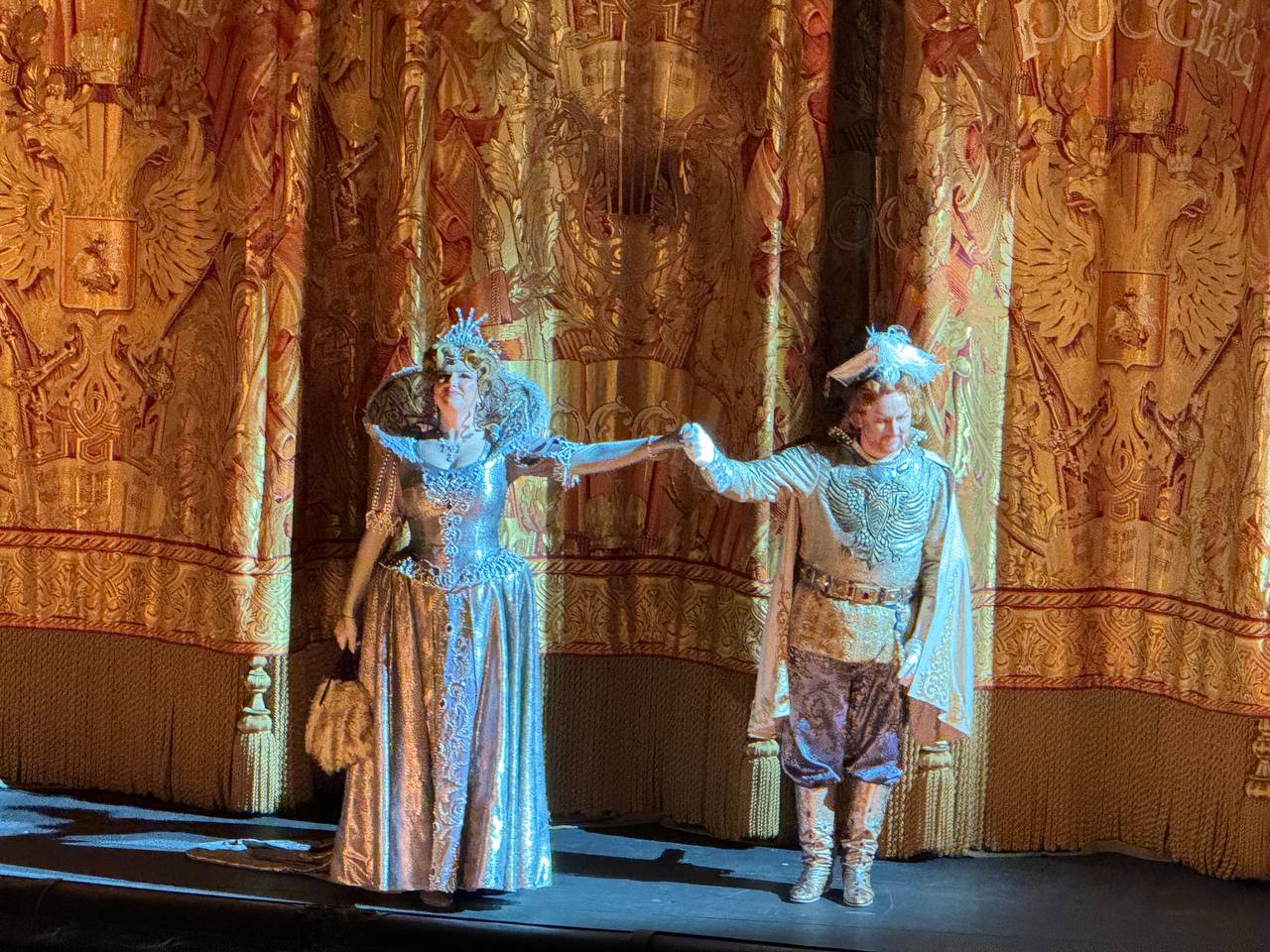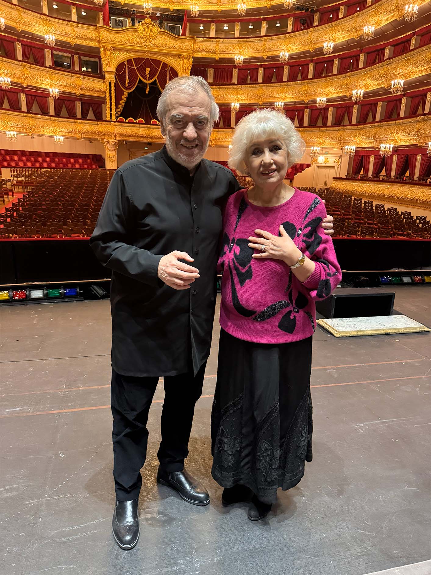 А после спектакля в честь юбилея Нины Николаевны Терентьевой и тёплых поздравлений прямо на сцене Большого театра участники спектакля и легендарный юбиляр, дорогая Нина Николаевна, встретили Старый Новый год!